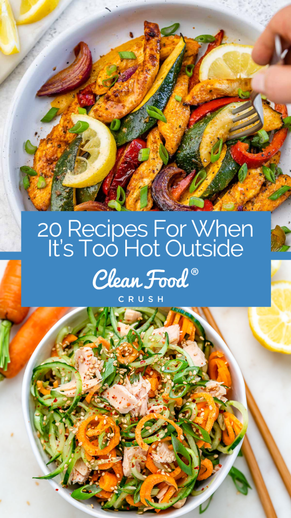 Here are 15 meals perfect for those days when it’s just too hot to cook, PLUS 5 extra recipes for snacks, treats, and desserts.