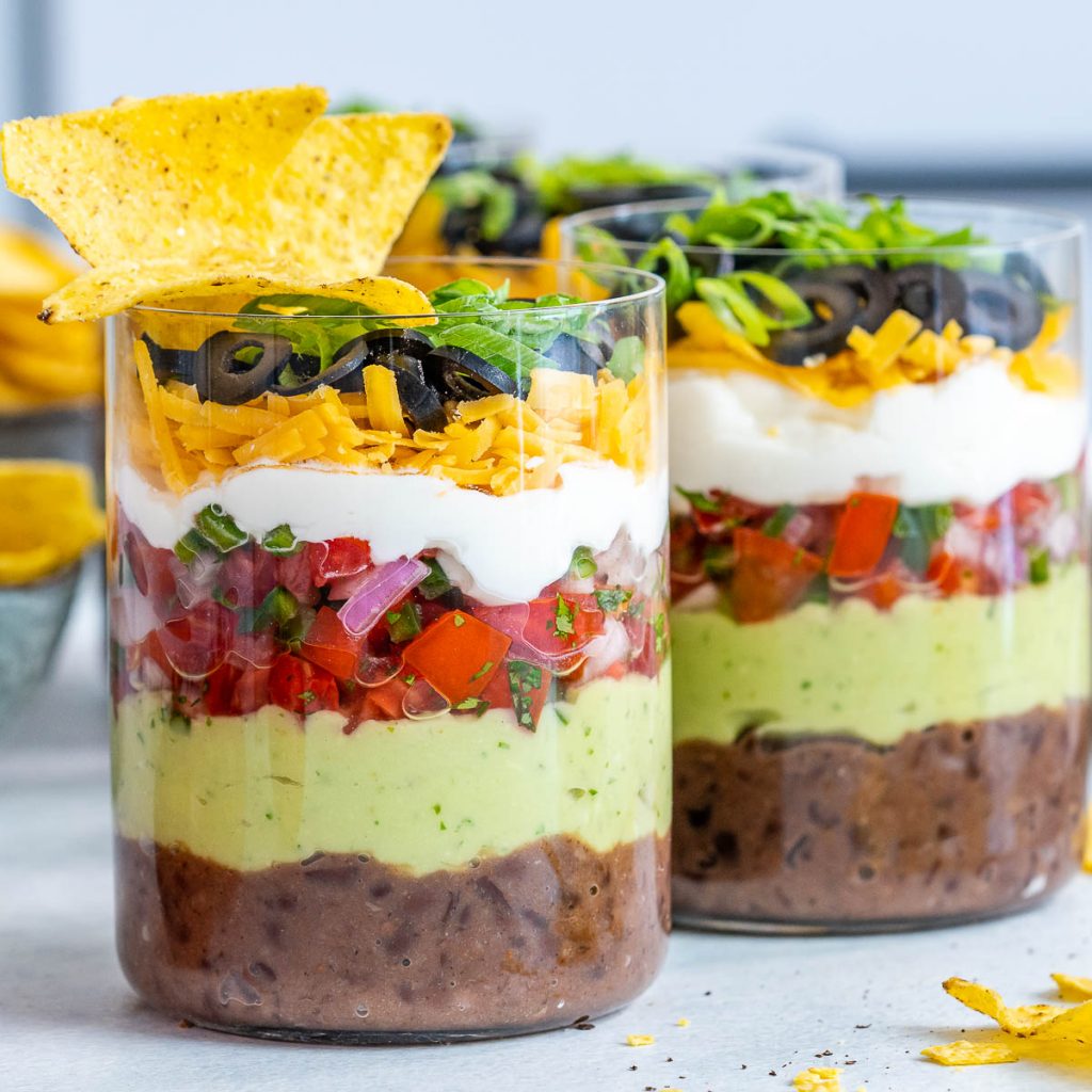 These 7-layer Dip Cups are SO FUN to serve at any party, BBQ, potluck, or gathering.
