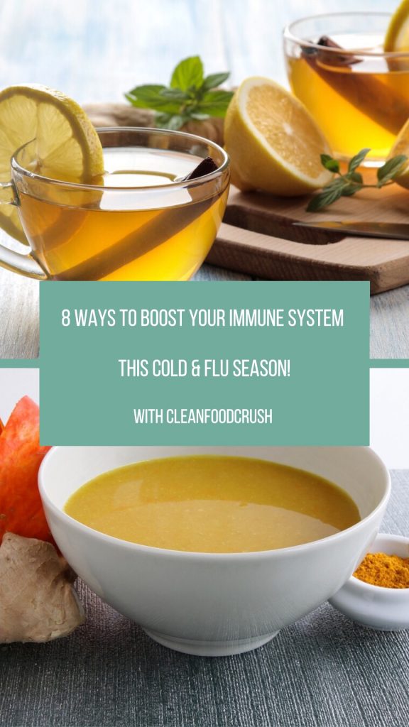 Bone broth is rich in immunity-boosting minerals and healthy protein. Boil in some ginger, a pinch of cayenne and some garlic for an extra-strength cold & flu fighter. You can drink a cup of this per day if you feel something coming on, or if you ended up catching a bug to feel better sooner.