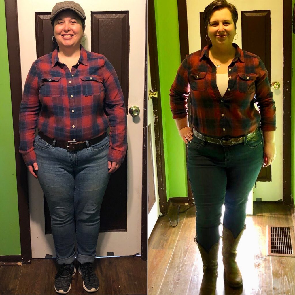 Angela and her husband Before & After the 30 Day Clean Eating Challenge