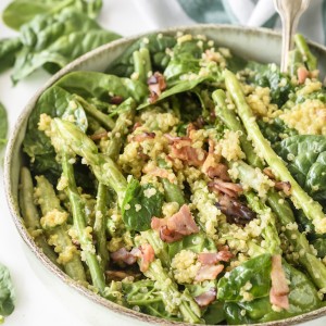 Asparagus + Quinoa with Bacon & Fresh Spinach Salad 🌱🥓