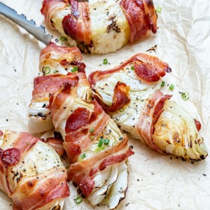 Bake for 40-45 minutes, flipping the wedges halfway, or until cabbage is tender and bacon is crisp.