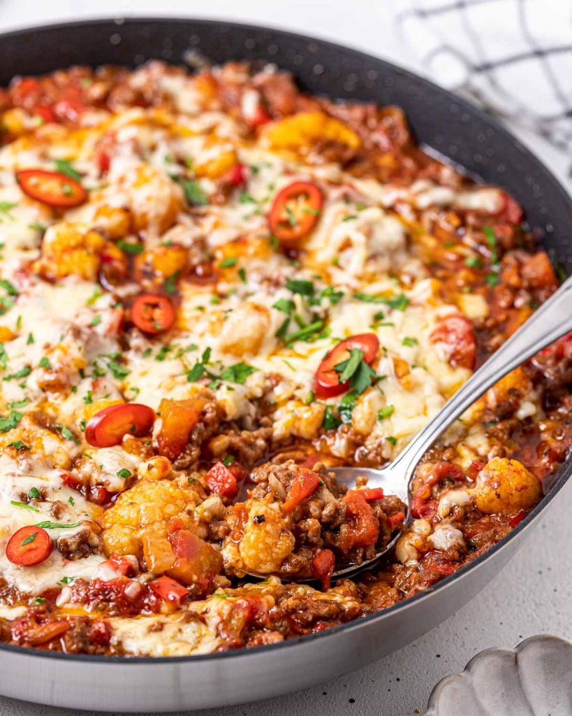 - Sprinkle with freshly shredded cheese and cover the skillet, cooking for a couple of minutes longer, until nice and melty.