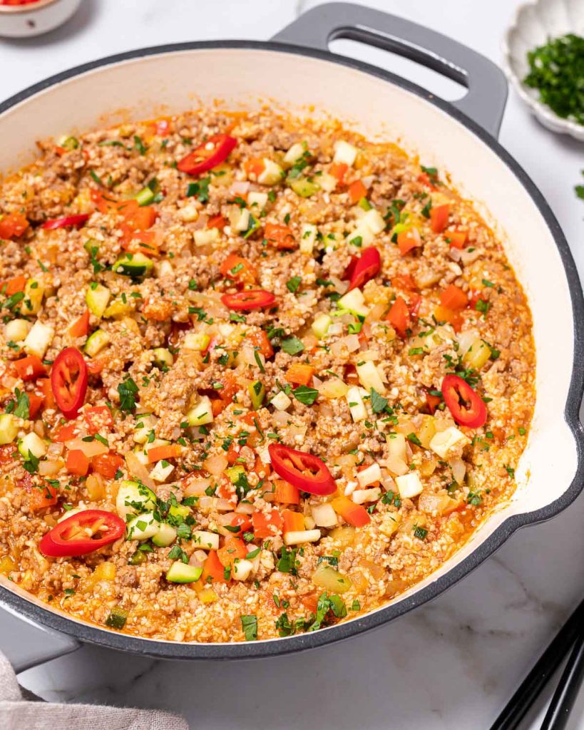 Beef Enchilada Skillet with Cauliflower “Rice”