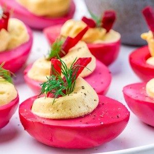 Beetroot-Dyed Deviled Eggs