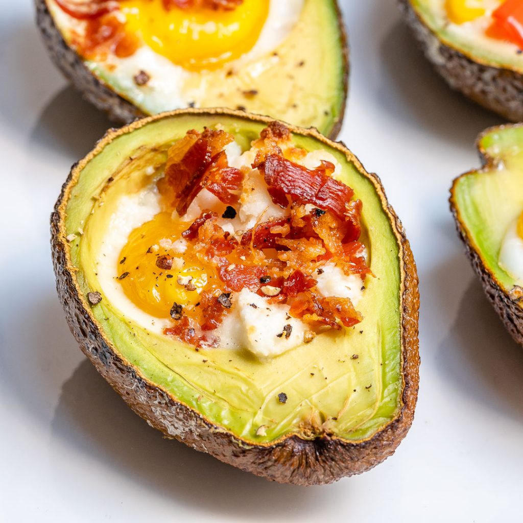 Preheat your oven to 400 degrees f. Cut each avocado in half and carefully remove the pits.Then, using an ice cream scoop or spoon, take some of the flesh out to create a bigger space for your egg and toppings (chop the avocado and use as topping too, or mash with lime to eat on the side).