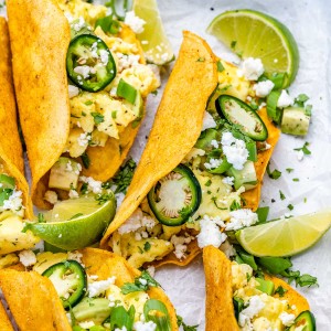 Serve the eggs inside your crispy corn tortillas and add toppings of choice.