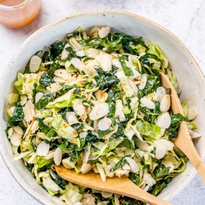 Keeping it SUPER SIMPLE with this easy-to-make fresh salad + tangy dressing that is quite similar in taste to a certain fast food chain’s popular Kale Crunch Salad.