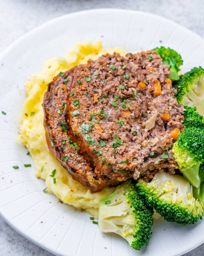 - Serve your meatloaf slices over mashed potatoes and steamed broccoli.