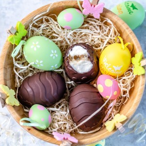 You’re going to need an egg-shaped silicone mold to create these chocolate eggs. I just hopped on Amazon and found several with fast shipping, listed here.