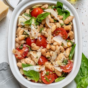 A bit of a fresh Caprese, or margarita flair with those light tasting, mild cannellini beans, YUM!