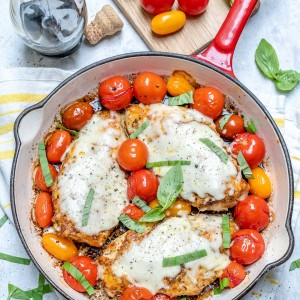 Chicken Caprese Skillet for a Beautiful Clean Eating Dinner Idea!