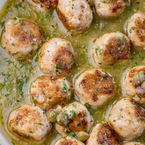 These are AWESOME for meal prep (so consider doubling the recipe)! I placed leftover meatballs in containers with riced cauliflower and drizzled a little piccata sauce on top. Stays good refrigerated for up to 4 days.