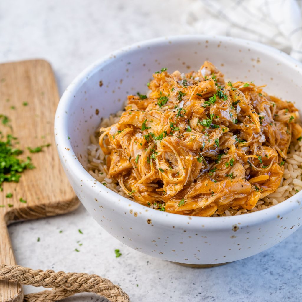 - Add the shredded chicken back into your cooker. Taste test, then season once again with sea salt and pepper if desired, and stir in the chopped fresh parsley.