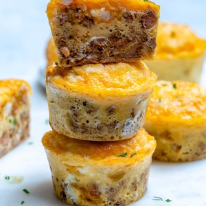 If you’re following a specific plan like the 30 Day Clean Eating Challenge or trying to increase your daily protein, then try adding a few extra eggs, or even a bunch of egg whites can be added to this recipe to make your egg muffins super-high protein.