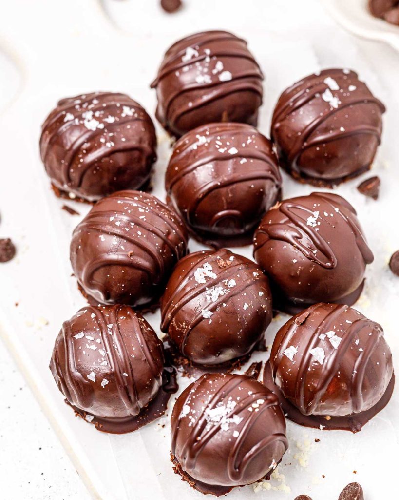 I sprinkled this batch lightly with fancy sea salt before placing them in the fridge to firm up…and OMG…they tasted more like an indulgent fancy chocolate candy than an energy bite!
