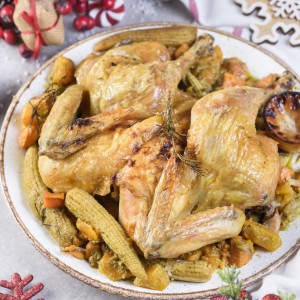 Christmas Roasted Spatchcock Chicken with Root Veggies + Pesto