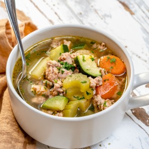 First, brown ground meat with your diced onions, and minced garlic, then drain grease and season with Italian seasonings, sea salt, and pepper to taste. Remove from the heat, then choose your soups cooking method below:
