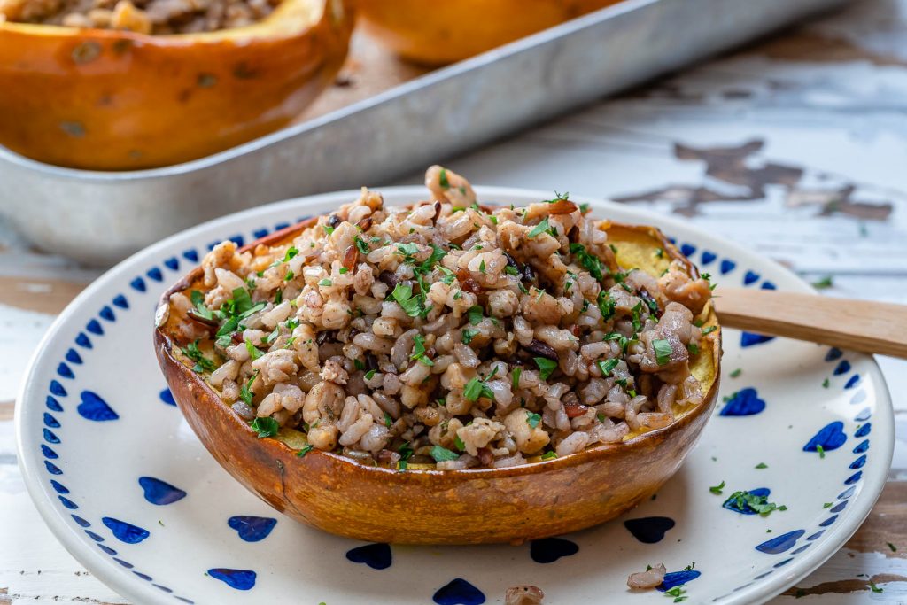 - Stuff the roasted squash with the turkey-rice mixture, and sprinkle with fresh chopped parsley.