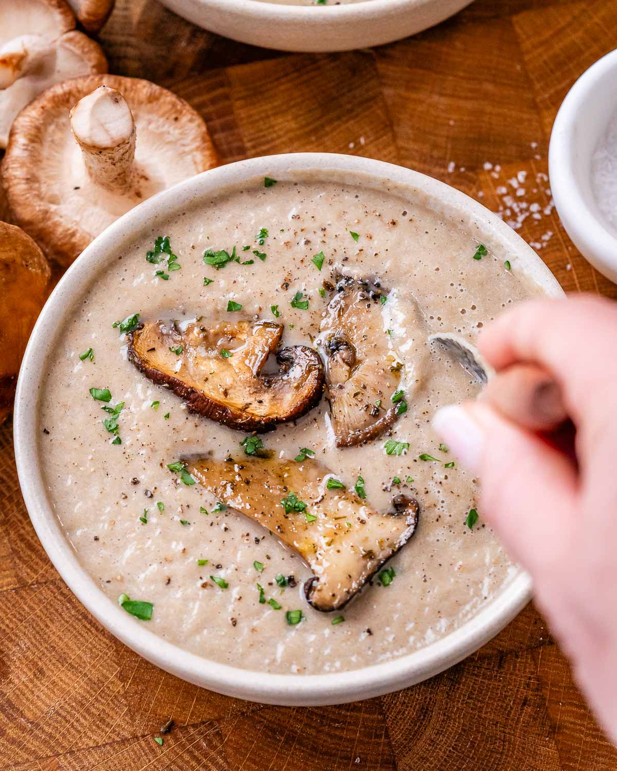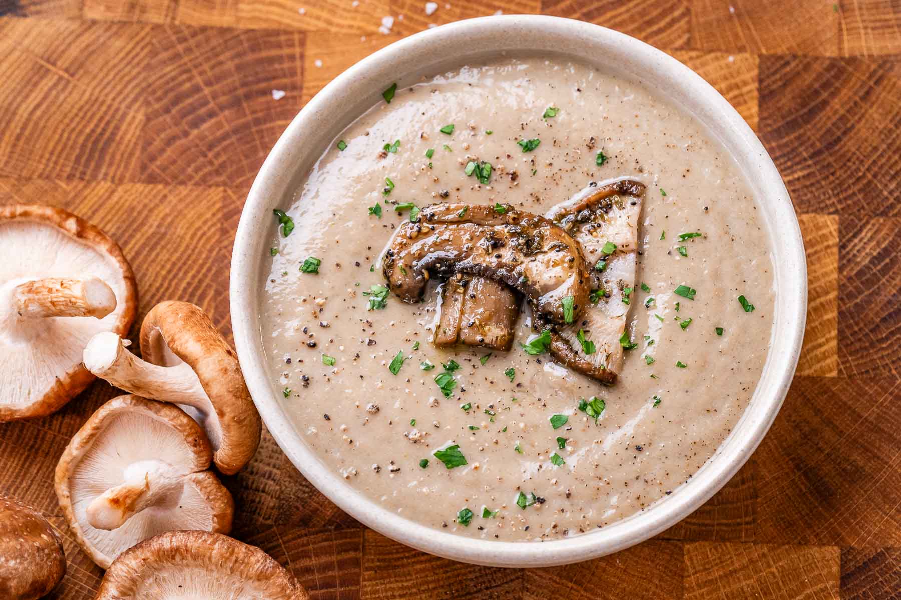 This isn’t the thin, watery version of mushroom soup; our creamy mushroom soup is a deeply umami, velvety bowl of warm comfort designed to nourish your body and satisfy your cravings for something rich and creamy. You will love the: