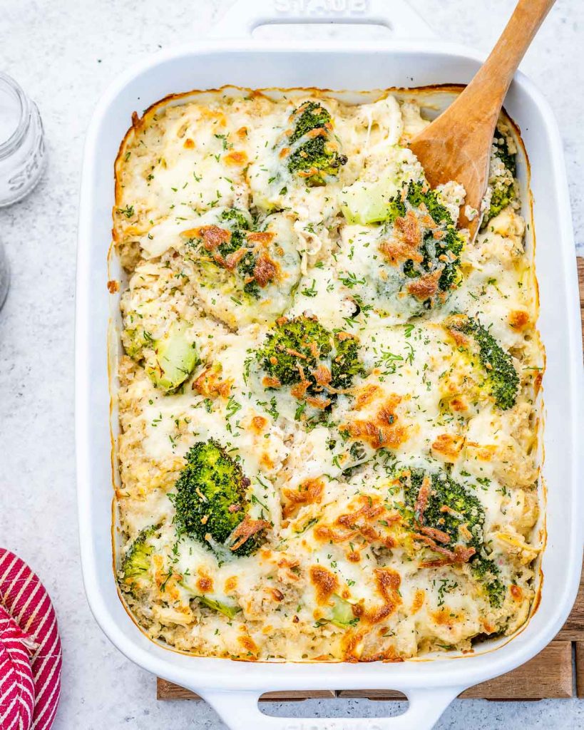 This EASY Chicken Broccoli Casserole is a delicious way to use up leftover cooked chicken (rotisserie chicken also works great).
