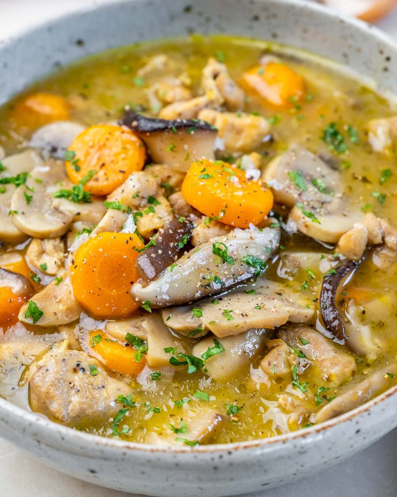 This comforting soup is a nutritional powerhouse, featuring protein-rich chicken thighs, immune-boosting mushrooms, and a variety of sautéed vegetables. The addition of garlic, thyme, and bay leaf provides an extra boost of antioxidants and flavor.