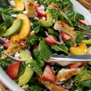 Crispy Quinoa Chicken & Strawberry Spinach Salad