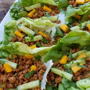 - Finally: Divide the cooked meat, cucumber, mango, cilantro, and peanuts among lettuce wraps.