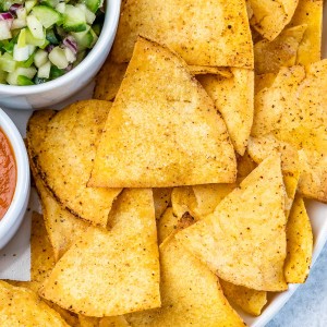 Allow your chips to cool before serving as they’ll crisp up as they cool. Serve with your favorite dip and enjoy!
