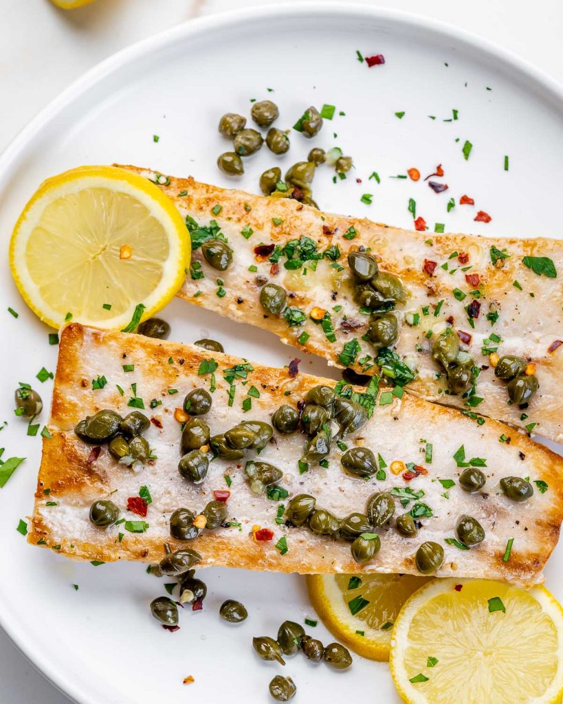 Super Tasty, Tender, Flaky fish dressed to perfection with a QUICK garlicky lemon caper sauce!