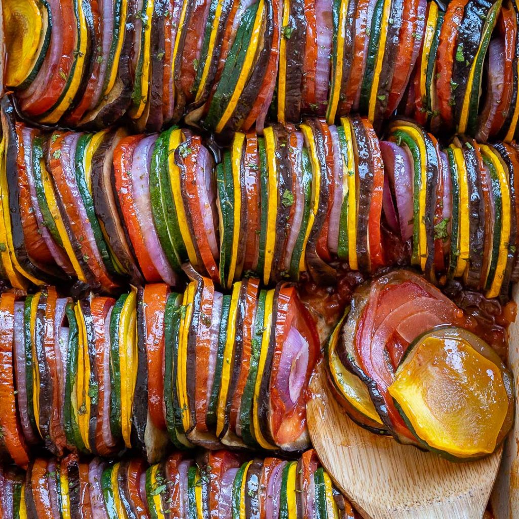 Ratatouille just might be one of the most interesting, and super delicious ways to get in a few servings of veggies with your evening meal.