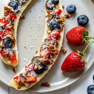 - Drizzle or spread with nut butter, then decorate with toppings.