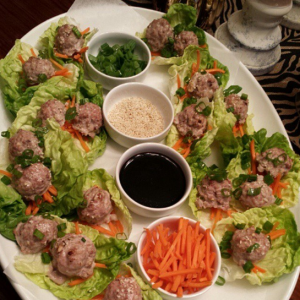 Ginger Turkey Meatballs on Butter Lettuce Leaves