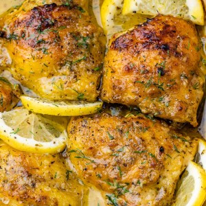 - If desired, tuck a few fresh lemon slices around your chicken and sprinkle with fresh herbs, as shown.