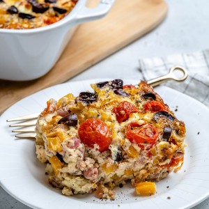 A bunch of our FAVORITE things, baked together to make a delicious morning breakfast idea…GREAT for weekend brunch to feed a crowd or weekly meal prep.