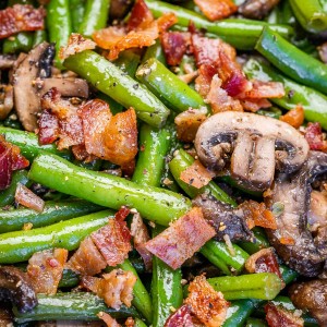Our Green Beans with Bacon and fresh Mushrooms is VERY TASTY and perfect for a quick weeknight dinner side dish, or an amazing addition to your weekly food prep meals, but also impressive enough to make for your holiday guests this upcoming Easter season.