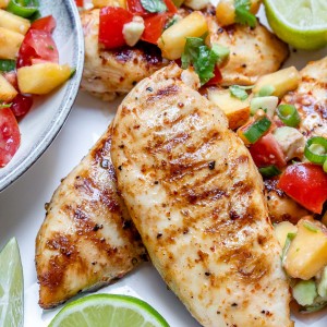 This Grilled Lime Chicken + Fresh Peach Salsa Recipe is Fantastic!
