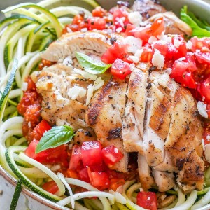 Grilled Chicken Zoodle Bowls with Tomato-Basil Sauce