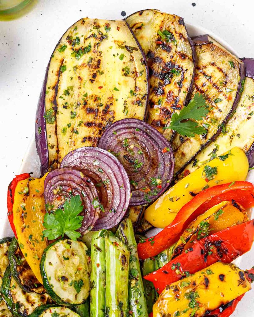 Set each veggie on a platter as they are ready. Smaller veggies will finish grilling faster than the larger/thicker ones.