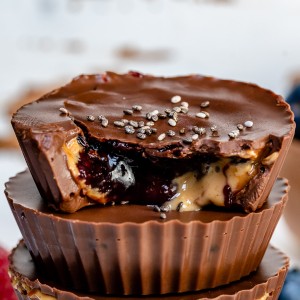 - Spoon the remaining chocolate over each and gently spread until you get a nice even top. Sprinkle with a pinch of chia seeds.