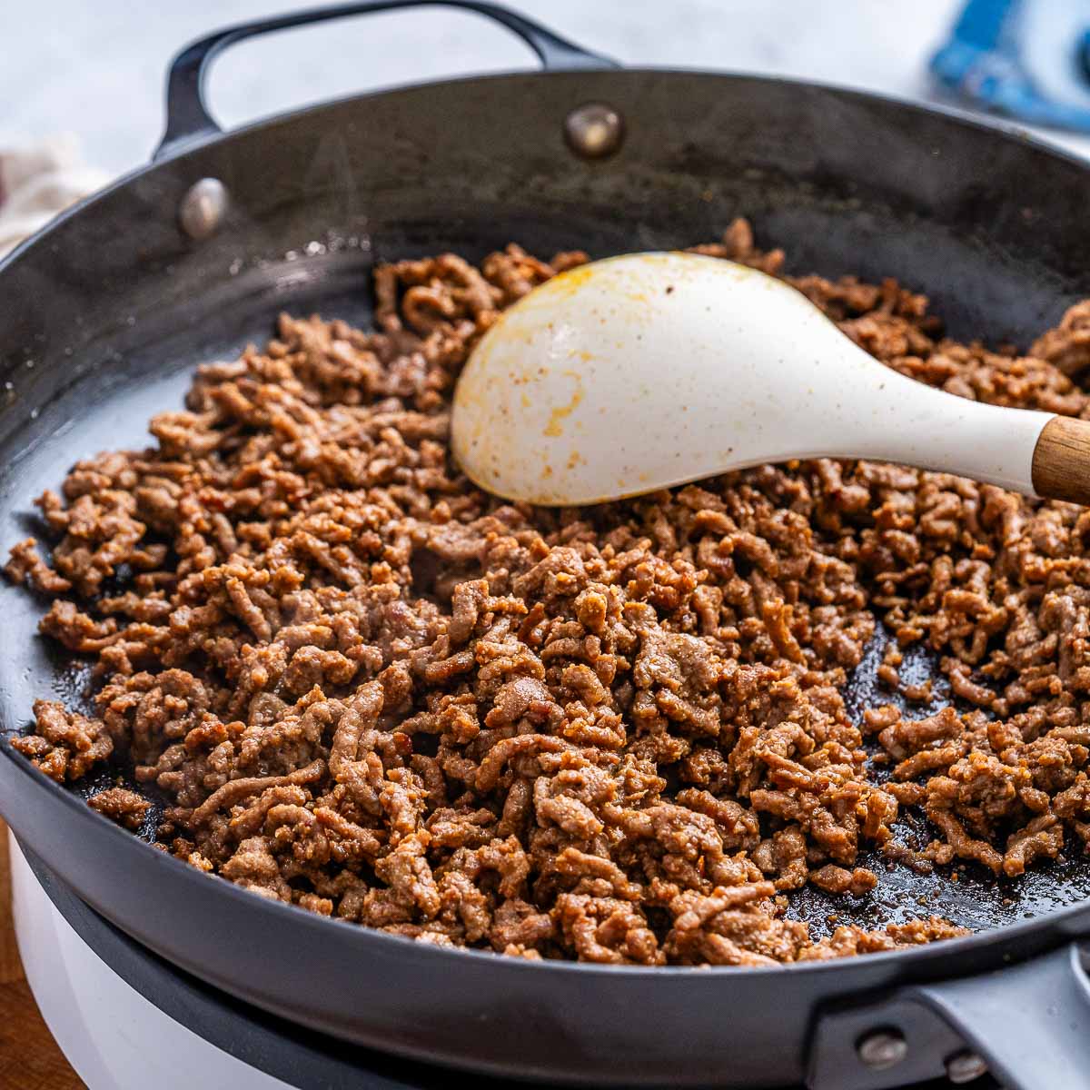- To easily break up the ground beef, try using this heat resistant meat masher.