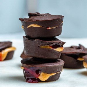 Remove from the freezer and top each cup with 1/2 teaspoon of peanut butter and 1/2 teaspoon of jam. Freeze for another 15 minutes.