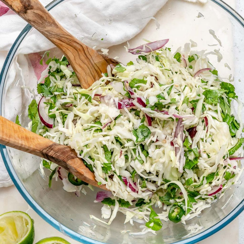 Most people don’t know what a powerhouse of a food cabbage really is. I’ve been eating it on the regular for the past 6 years…both in soups and salads like this.
