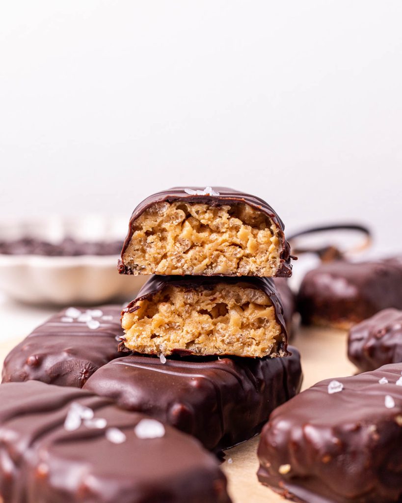 Well, they don’t taste *exactly* like the iconic Butterfinger bar – but they’re close. These are rich and indulgent – just so good! Homemade Butterfinger Bars will definitely satisfy a craving you might have! I like the clean flavors of our version much better than the ultra-processed store-bought ones.