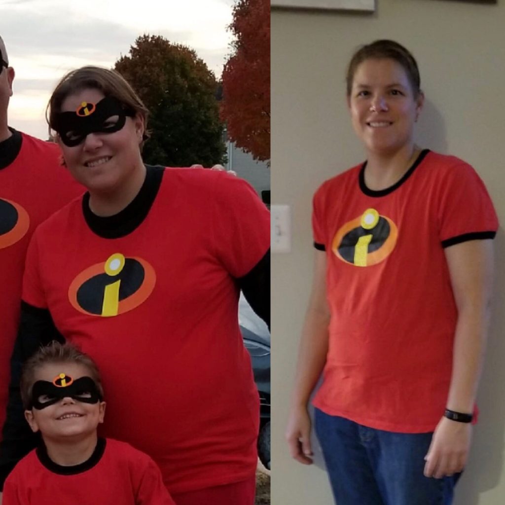 Here is another before and after of me, and no I am not pregnant in that before pic although it looks like it. So far, I have lost 45lbs and inches from everywhere just from changing the way I eat. I can even fit into clothes I haven’t worn since before my youngest was born!