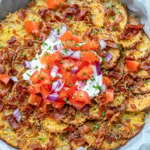 Crispy baked potato slices, loaded up with all your favorite stuff (aka: bar food) recreated in your own kitchen!