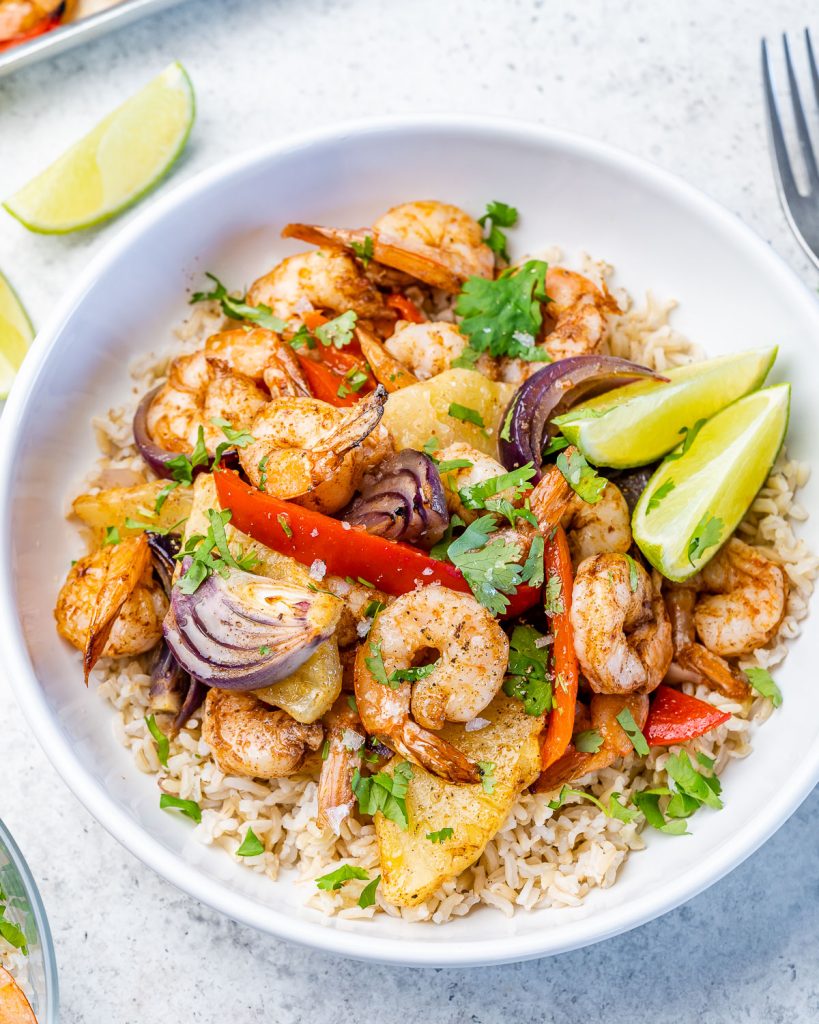 - Assemble your bowls by adding a base of cooked grains like quinoa or brown rice, or cauliflower rice, then top with the jerk shrimp mixture.