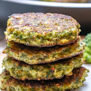 - Take about a large-ish spoonful of your broccoli mixture (a slightly overflowing Tablespoon full), then flatten it between your palms and place it into the pan.
