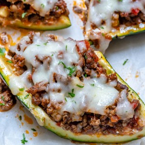 To stuff the zucchini boats, add a very thin layer of ricotta, or cottage cheese into the bottom of the zucchini boat, then fill with your meat mixture, and finally sprinkle each lightly with shredded mozzarella.