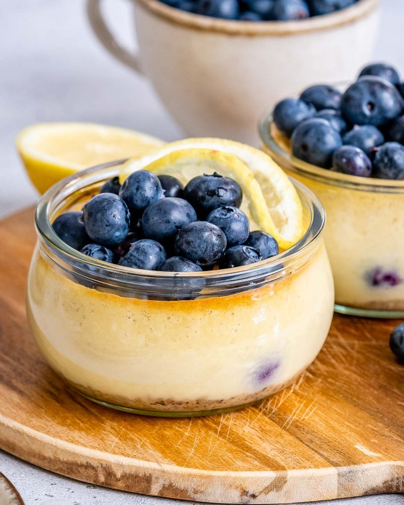 Lemon-Blueberry High Protein Cheesecake combines the creaminess of cheesecake with the brightness of lemon and the sweetness of blueberries. This dessert is a protein powerhouse that will keep you full and satisfied.